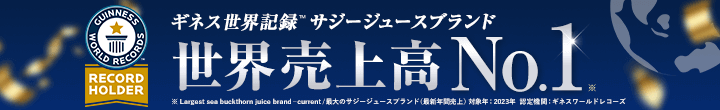 | どんな味ですか? | 豊潤サジーは、すっぱい成分のリンゴ酸(有機酸)をトップクラスに含有しています。そのため、酸味が強くなっております。植物由来の甘味料ステビアにより後味がほんのり甘い個性的な味です。 ※すべての食品中No.1のリンゴ酸含有量:食品成分データベース(文部科学省)で、2009~2022年の分析結果の平均値と比較。 ※成分分析依頼先:一般財団法人 日本食品分析センター ※栄養素の含有量は収穫年の天候等により変動がございます。 |